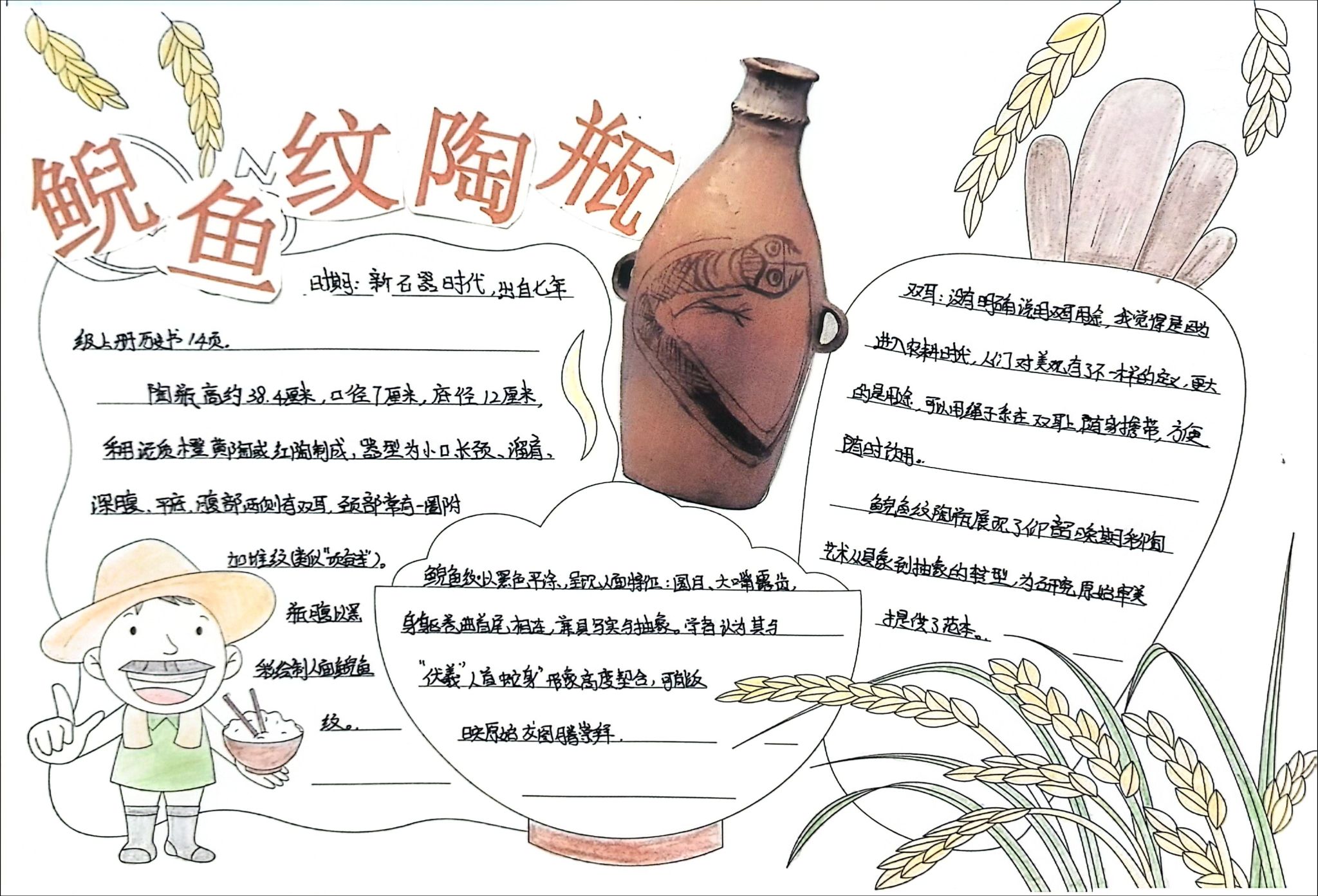 于是,我们看到了百花齐放的创造:有的同学精心手绘了“人面鱼纹彩陶盆”,在笔触间感受史前的神秘微笑;有的同学为“秦始皇兵马俑”撰写了动人的独白,仿佛自己就是那个被凝固千年的战士;还有的同学将“甲骨文”拓片精心装裱,解读那些刻在龟甲上的命运疑问。——这不再是一份作业,而是一次文化的传承与再创造。他们将自己对历史的感悟、审美的判断和情感的投射,悉数典藏于这一方纸页之上。这件“镇馆之宝”,不仅属于历史,更属于此刻正在与历史对话的、年轻的他们。