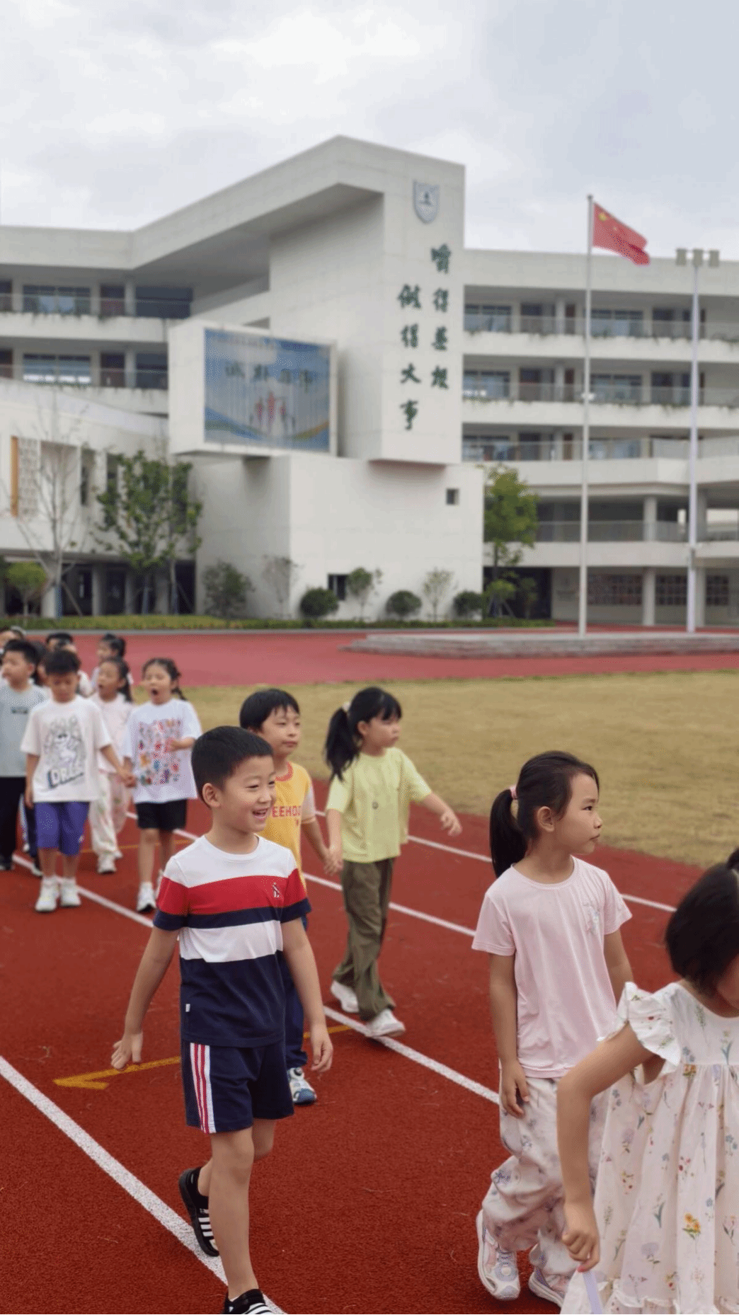 大课间进退场演练中,孩子们虽步履稚嫩却神情专注。在老师的耐心指导下,他们逐渐理解集体生活的秩序与规范,初识校园生活的节奏与韵律。