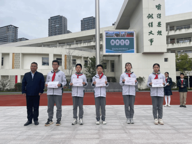 仪式上,学校对在“青春盛世 梦想启航”迎国庆系列活动中表现优异的同学进行了表彰。董琪老师宣读了书信征文比赛的表彰决定陈卓老师为特等奖同学颁奖。刘浩老师为在篆刻、石塑碑文、手工、书法、手抄报等艺术作品展中参展的学生代表颁发了证书。这些丰富多彩的活动,不仅为同学们提供了展示才华的舞台,更是学校育人文化中不可或缺的部分,激励着同学们全面发展。
