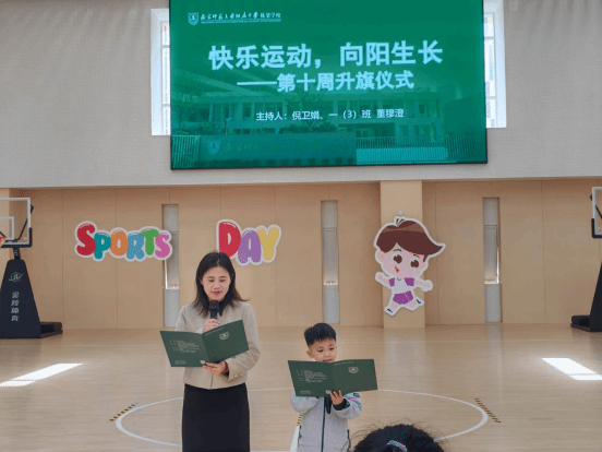 上午的篮球馆三楼暖意盎然,倪卫娟老师与一(3)班董穆澄同学组成的主持搭档,以亲切的问候拉开了闭幕式的序幕。伴随着雄壮激昂的国歌,五星红旗缓缓升起,全体师生肃立行注目礼,爱国情怀与运动精神在这一刻深情交融。正如本次升旗仪式的主题“快乐运动 向阳生长”所言,运动是成长路上最坚实的动力,拼搏的汗水与团结的力量,让每一位栋梁学子在阳光下肆意绽放活力。